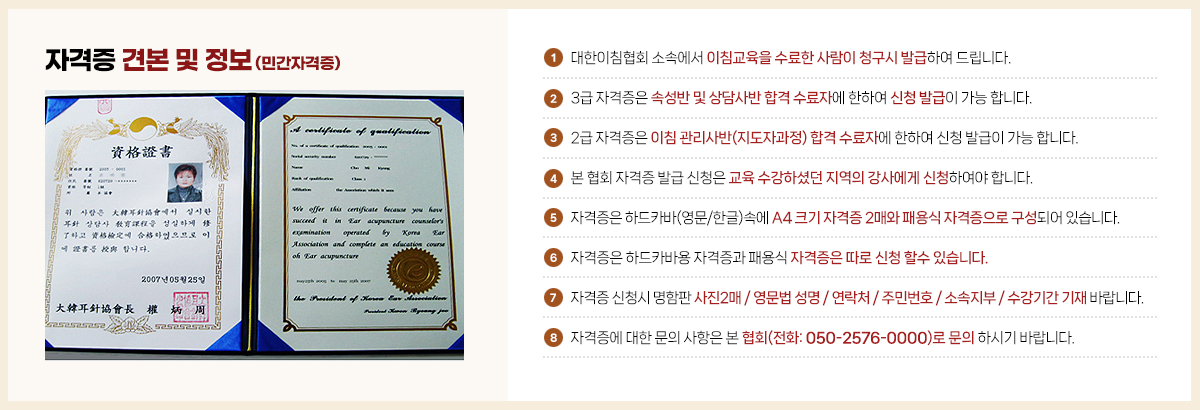 대한이침협회 자격증